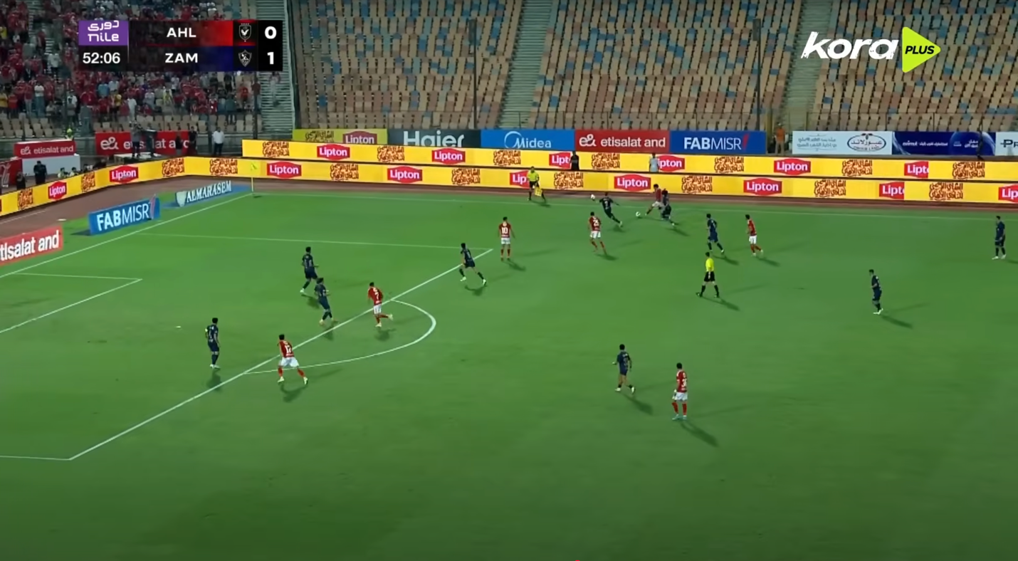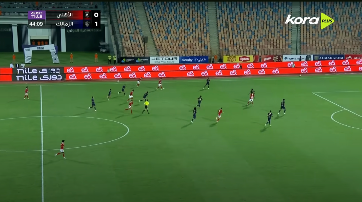 حين يبدأ الفريق في التراجع بدلًا من المحافظة على الإيقاع، فإنه يخاطر بأن يُجبر على مواجهة ضغط مكثف دون قدرة على بناء هجمات منظمة مضادة. هذا ما حدث للزمالك: الأهلي بدأ يختبر العُمق الدفاعي، يمرّر خلف الأجنحة ويتوغَّل في المساحات التي تركها الأبيض، فتمكَّن من قلب الطاولة ،