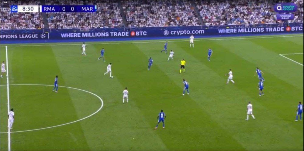 ريال مدريد تحت قيادة تشابي ألونسو تحوّل من فريق يعتمد بشكل كامل على نظام اللعب التمركزي، القائم على شغل ممرات محددة والالتزام بمساحات محددة وأدوار ثابتة، إلى فريق أكثر مرونة أثناء الحيازة في مواجهة مارسيليا.مبادئ اللعب التمركزي لم تكن مناسبة لعدد كبير من عناصر ريال مدريد، وهو ما جعل الفريق يظهر بصورة رتيبة ونمطية في الاستحواذ، مع قلة الحلول وضعف التنوع، بل وأدّى ذلك إلى شلل في أدوار بعض اللاعبين مثل تمركز فالفيردي بين الخطوط في الممر الأيمن وأردا غولر في الممر الأيسر.لكن في مباراة مارسيليا، تخلّى ألونسو عن تلك المبادئ، مما منح الفريق قدراً أكبر من الحرية والمرونة خلال الاستحواذ على الكرة.