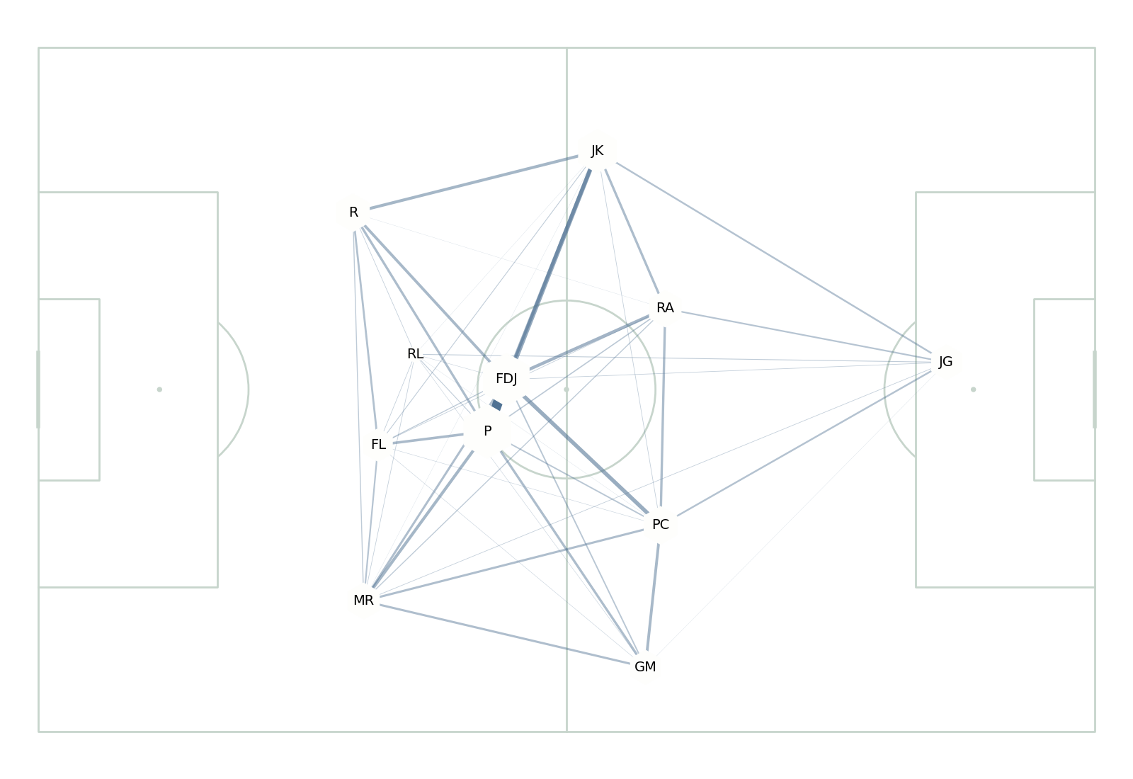 من خلال خريطة التمريرات هذه، سيتم ملاحظة اعتماد الفريق عليهم بشكل كبير....
